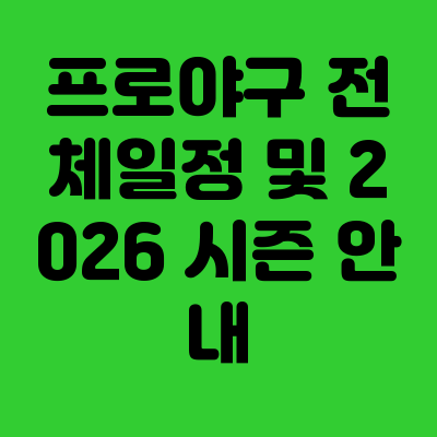 프로야구 전체일정 및 2026 시즌 안내